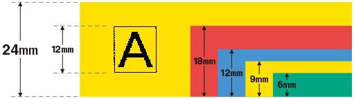 SỬ DỤNG BĂNG NHÃN CÓ ĐỘ RỘNG 24, 18, 12, 9 VÀ 6 MM.
